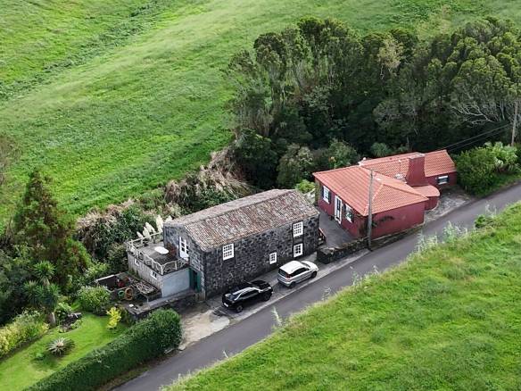 Autentica architettura in pietra: Costruita con spesse pareti di basalto scolpite a mano, la struttura offre l’iconica estetica delle Azzorre in “bianco e nero”.